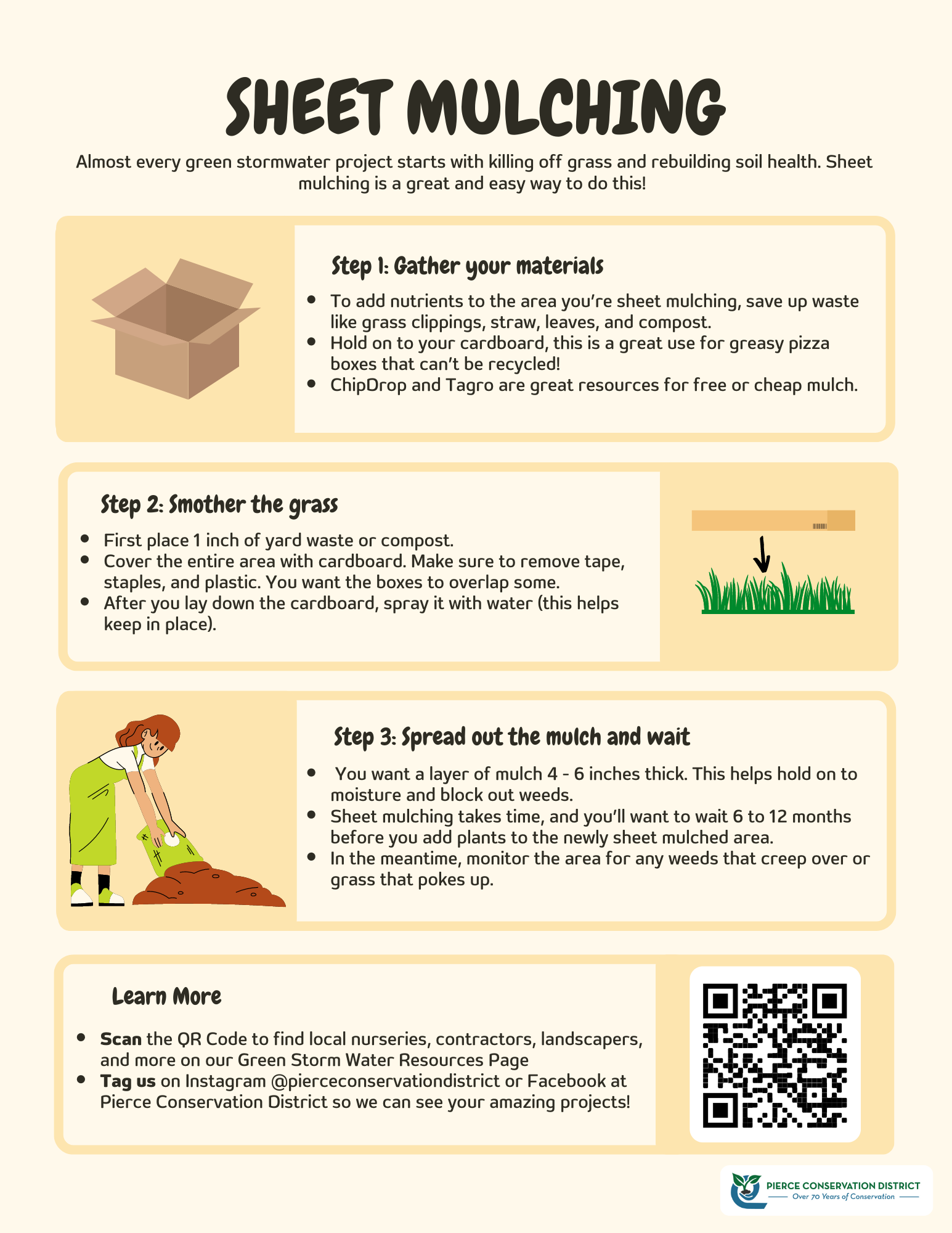 - Sheet Mulching - Almost ever green stormwater project starts with killing off grass and rebuilding soil health. Sheet mulching is a great and easy way to do this!
